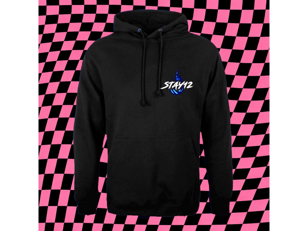 Na přední straně s potiskem Stay12 s plamenem, na zadní straně potisk se všemi charakteristickými předměty a kreslenou podobiznou Stay12.
