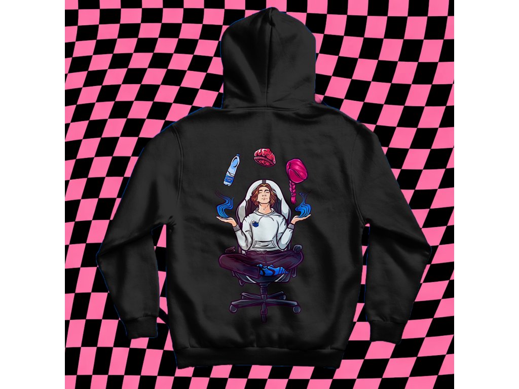 Černá mikina s kapucí, stahovací šňůrkou a kapsou. U dětské velikosti bez šňůrky. Materiál: 80% bavlna, 20% polyester.